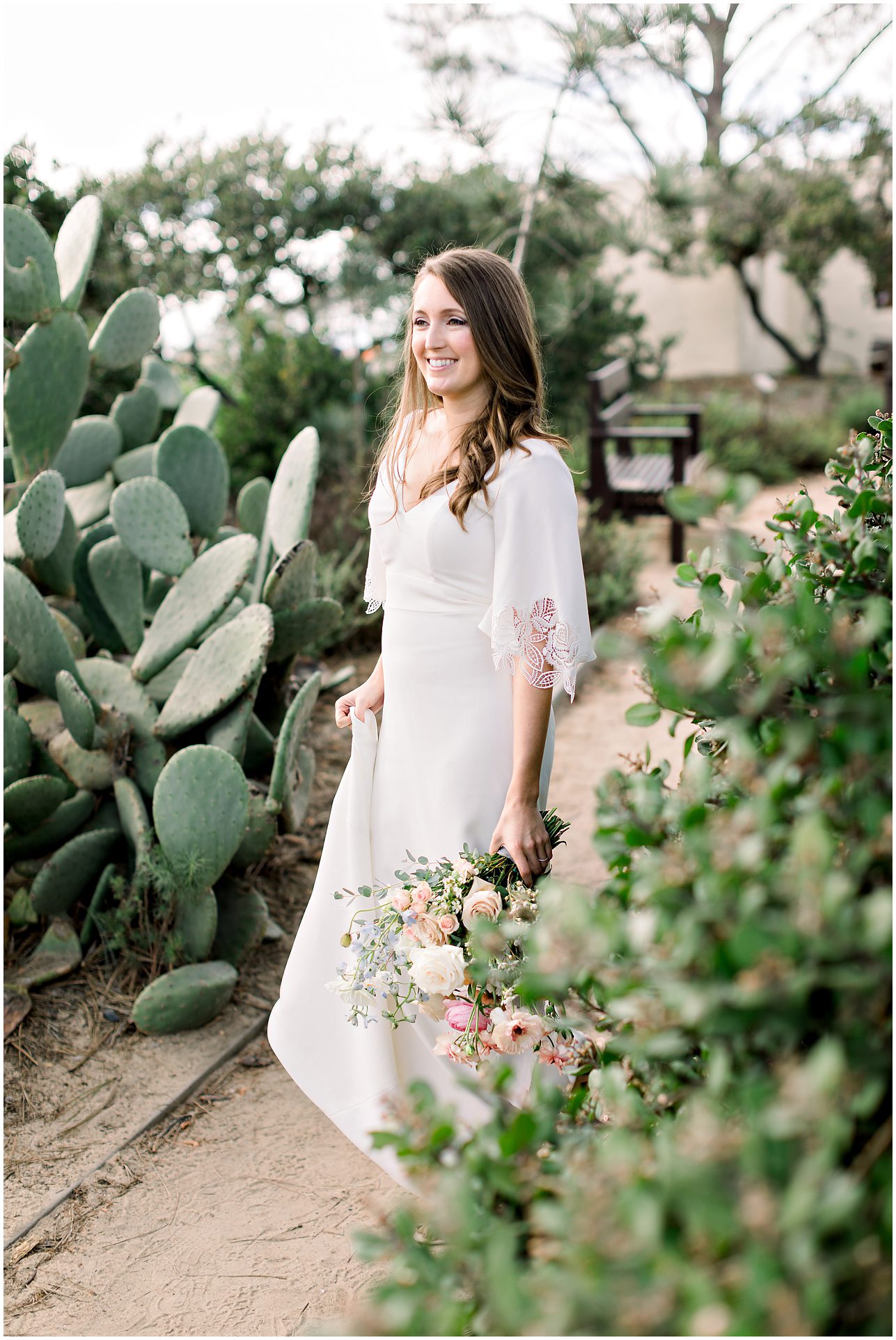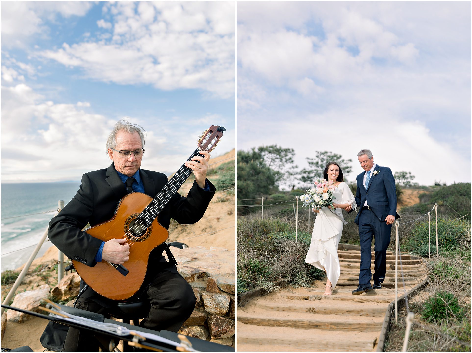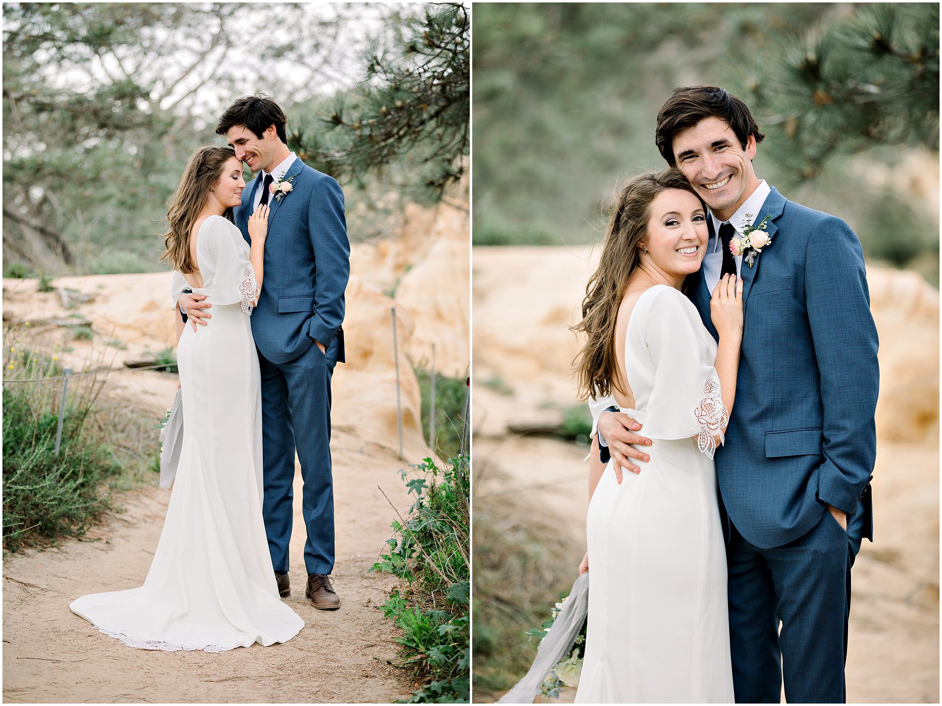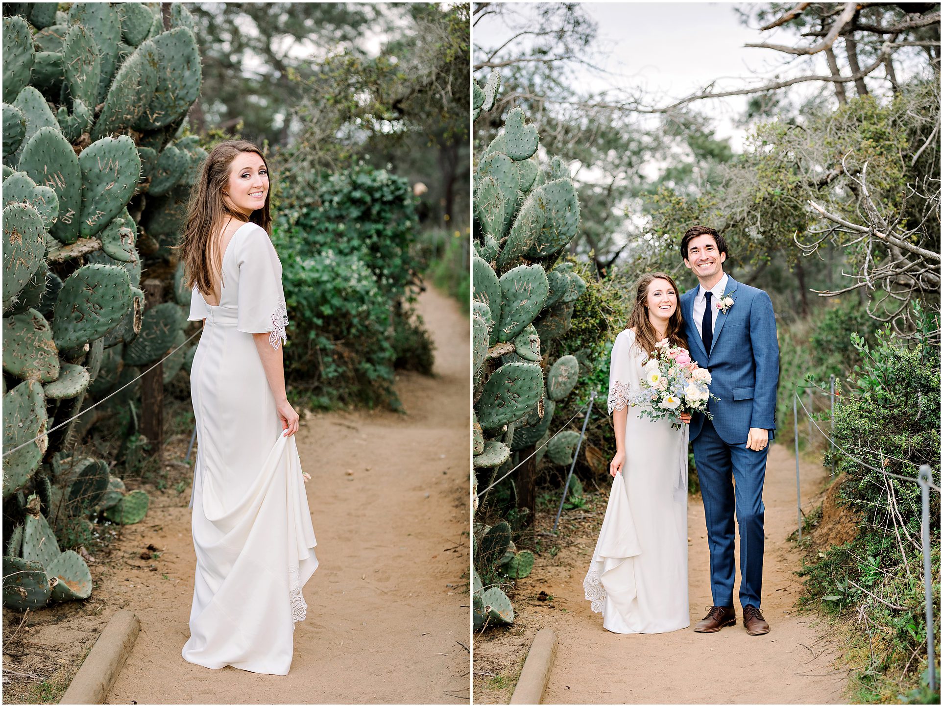 I am not exaggerating when I say that the light at Torrey Pines State Park was the most beautiful I have ever seen it on this wedding day! At first it looked like rain, and then the clouds turned magical. For a Spring wedding at Torrey Pines State Park, I don’t think I’ve ever seen it prettier. Spring weddings are my favorite because everything is so green and beautiful. Flowers are blooming and the skies are filled with gorgeous puffy clouds. I loved the intimacy of this small wedding on a clifftop overlooking the ocean in Southern California…