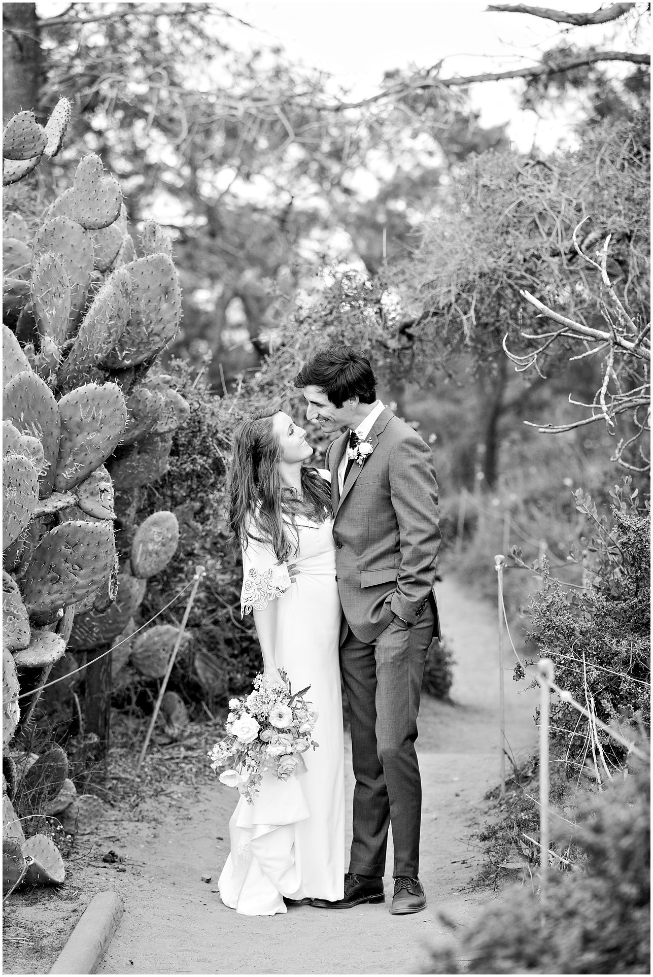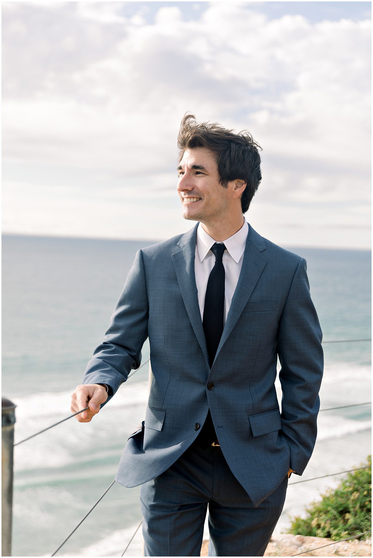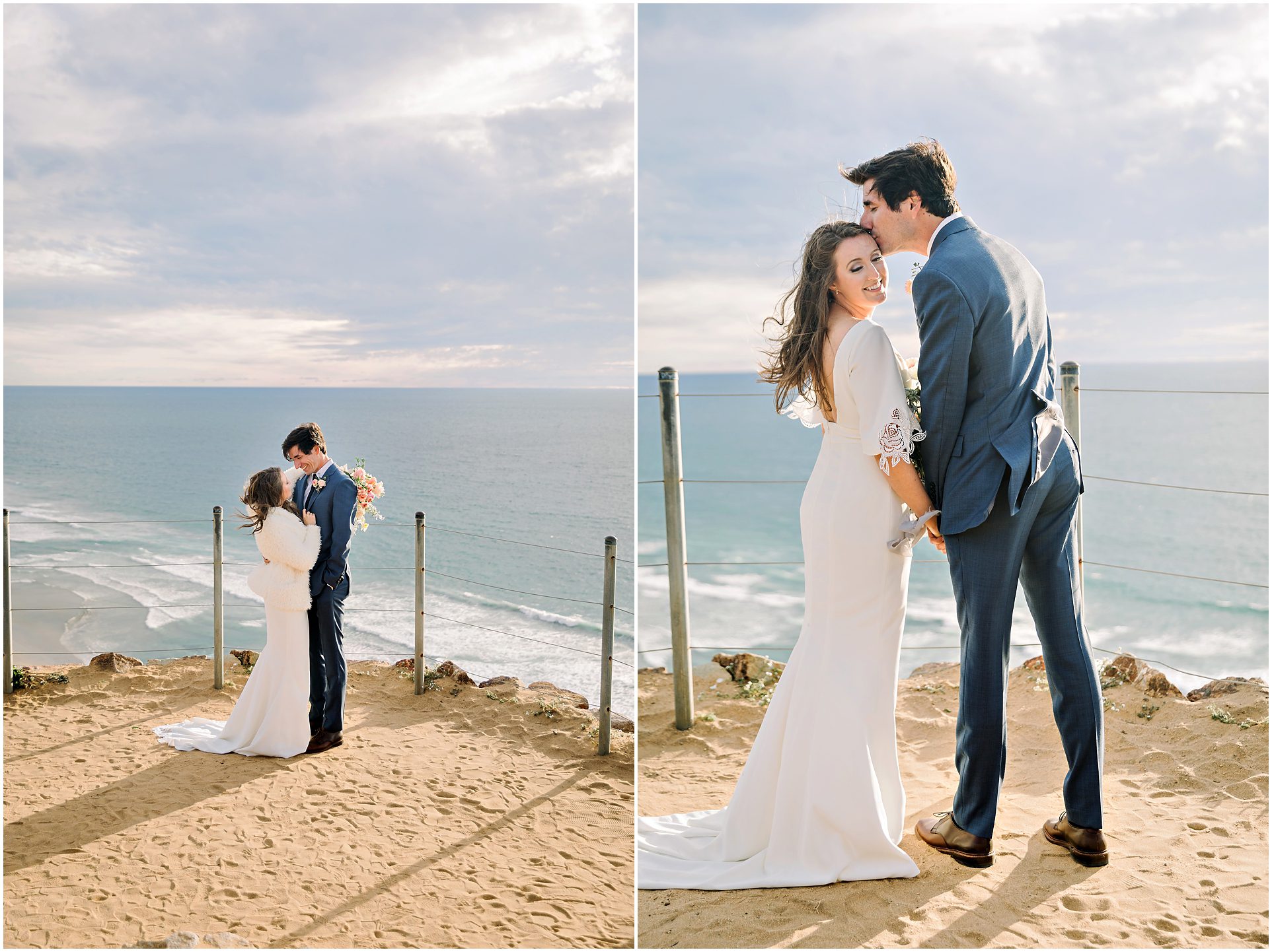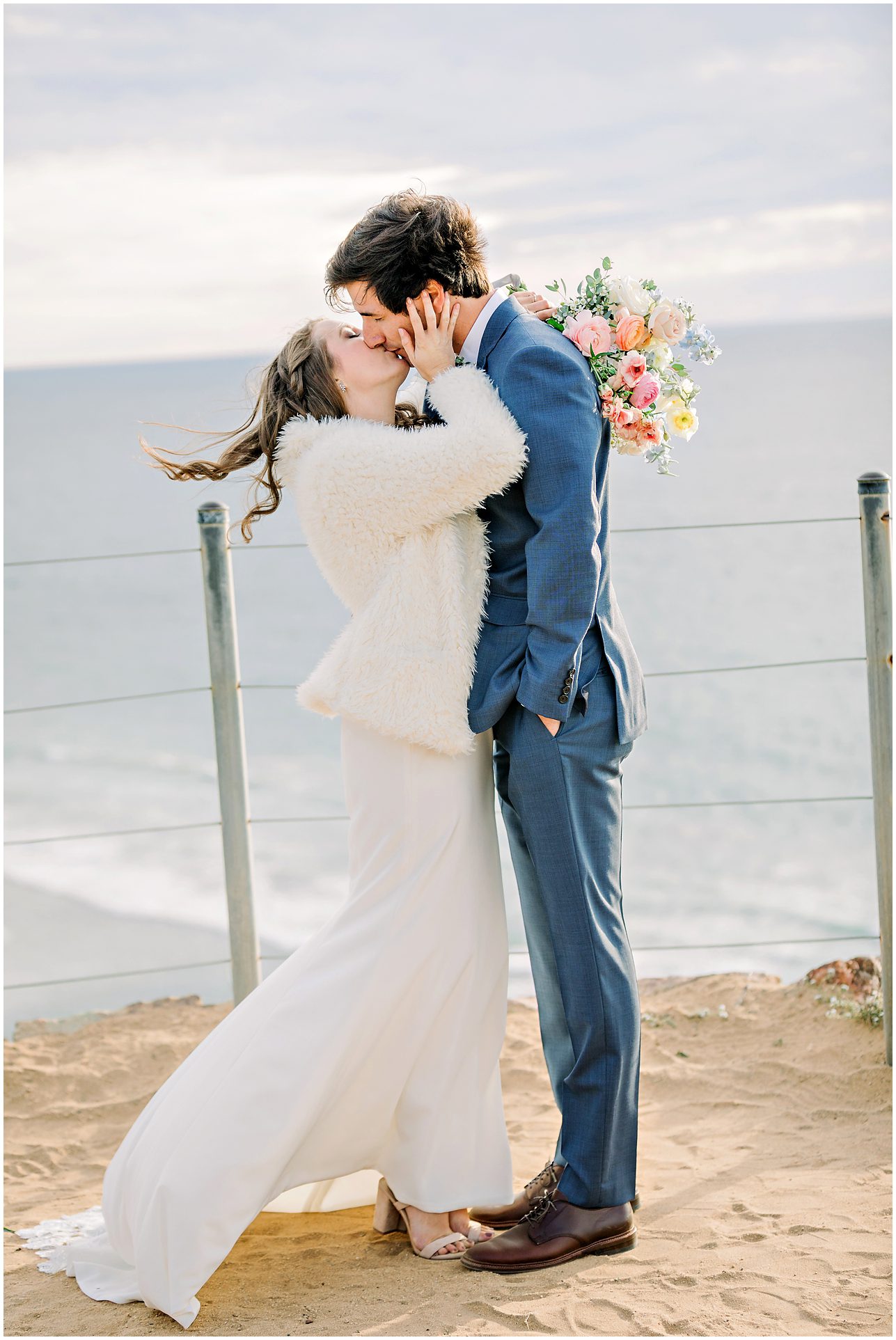 I am not exaggerating when I say that the light at Torrey Pines State Park was the most beautiful I have ever seen it on this wedding day! At first it looked like rain, and then the clouds turned magical. For a Spring wedding at Torrey Pines State Park, I don’t think I’ve ever seen it prettier. Spring weddings are my favorite because everything is so green and beautiful. Flowers are blooming and the skies are filled with gorgeous puffy clouds. I loved the intimacy of this small wedding on a clifftop overlooking the ocean in Southern California…